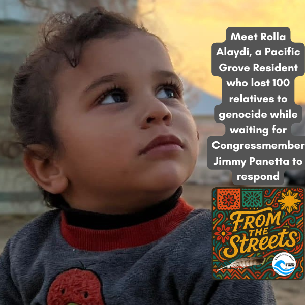 On this episode of From the Streets, Omar Dieguez speaks with Rolla Alaydi, a Palestinian American organizer who has spent months fighting to evacuate her family from Gaza. Since November 2023, Rolla has made countless appeals to Representative Jimmy Panetta’s office—pleas that have been met with silence, even as she has lost over 100 loved ones to Israel’s ongoing assault on Gaza.