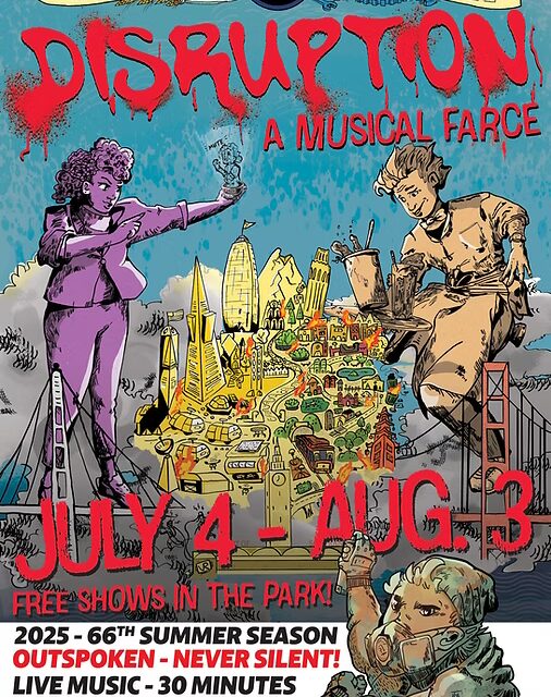 San Francisco Mime Troupe’s latest production, “Disruption“, will be performed in Santa Cruz on July 13, 2025.